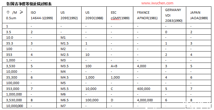 GMP車間ABCD級潔凈等級標準表參考:
