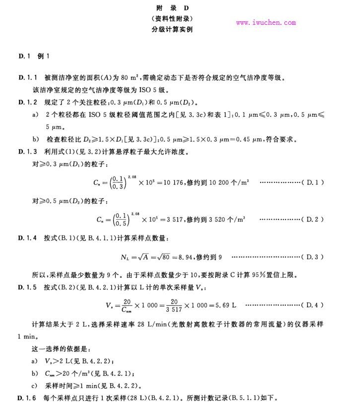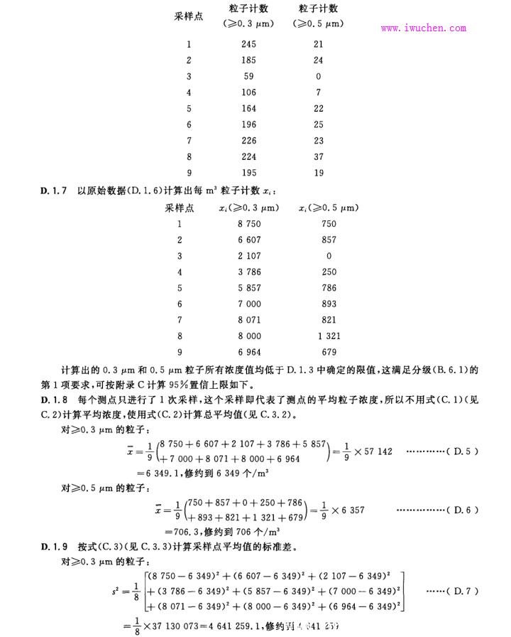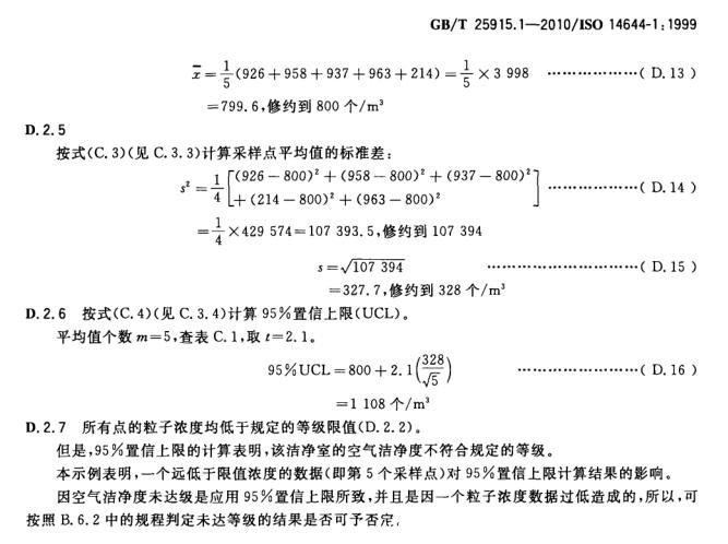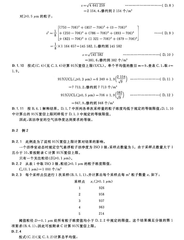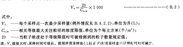 若每個采樣點測得的粒子濃度平均值 ,以及適用時按 B. 5. 2 計算的 95 % 置信上限,均未超過按 3. 2