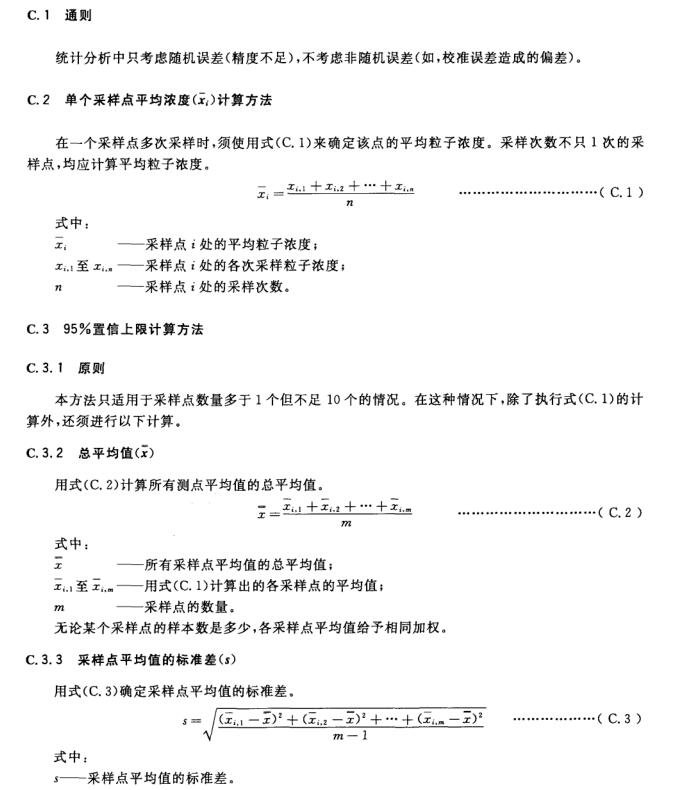 當(dāng)采樣點數(shù)量不只 1 個且不到 10 個時 ,按照 c. 3 中給出的規(guī)程 ,以所有各點的平均粒子濃 度