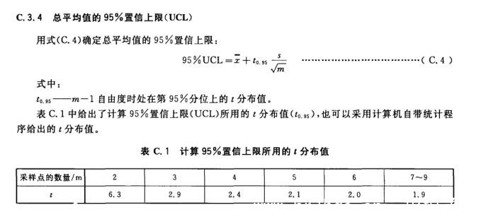 此外 ,若采樣點的數(shù)量不少于 2 且不多于 9,則按 c. 3 規(guī)定計算出的 95 % 置信上限,不得超過上面